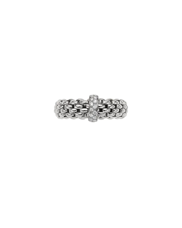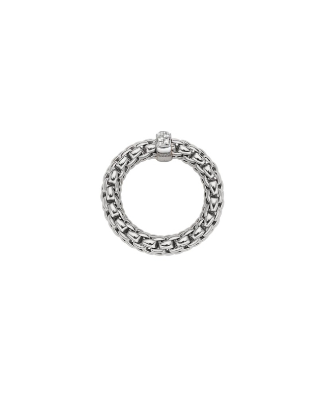 Anello flessibile interamente realizzato in oro 18 carati con pavè di diamanti.La caratura dei diamanti è di 0.10 totale. Il gioiello è interamente realizzato a mano in Italia da mastri orafi e verrà spedito con scatola e garanzia originali.Immagini