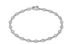 La raffi natezza e l’eleganza si incontrano in fantastici bracciali e collier Tennis con pietre preziose, con diamanti e diamanti neri simbolo di devozione ed amore eterno. La luce naturale ed accesa di gioielli senza confi ni lascia per sempre un segno nel cuore. Bracciale tennis con griffe in oro 18kt della collezione Incontri di Donnaoro. I diamanti hanno una caratura di 1.08 ct,colore G-VS. Un bracciale tennis dal design unico, espressione di uno stile dinamico, giovane ma elegante. Il gioiello verrà spedito con scatola e garanzia originali Donnaoro.