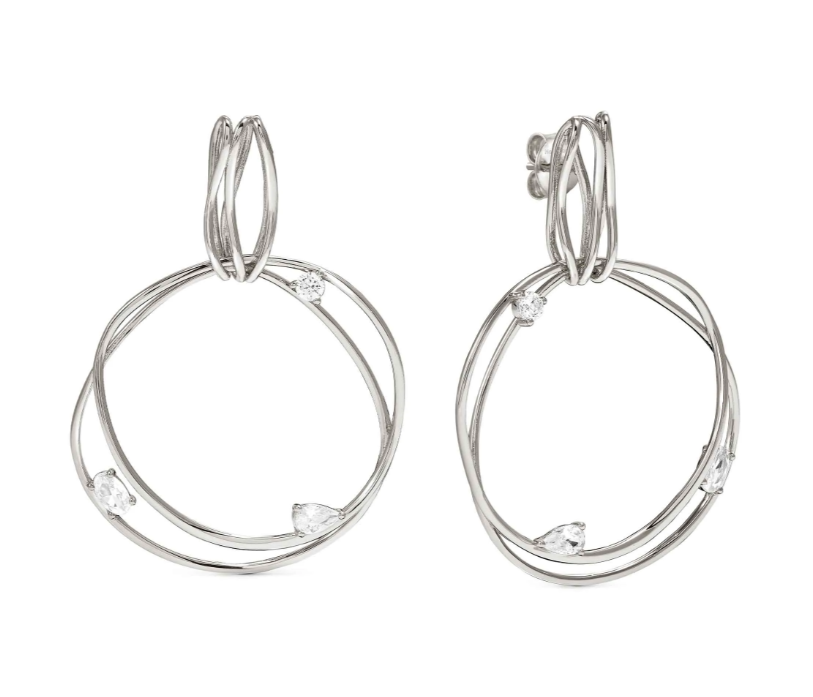 Orecchini in argento con maxi pendente circolare, definiti da linee fluide e sinuose che donano carattere a un gioiello importante ma sempre raffinato. I tre zirconi incastonati aggiungono il punto luce ideale per illuminare il volto con una brillantezza discreta e sofisticata. Disponibile con rivestimento superficiale in rodio bianco o oro giallo . Il gioiello verrà spedito con scatola e garanzia originali.Immagini