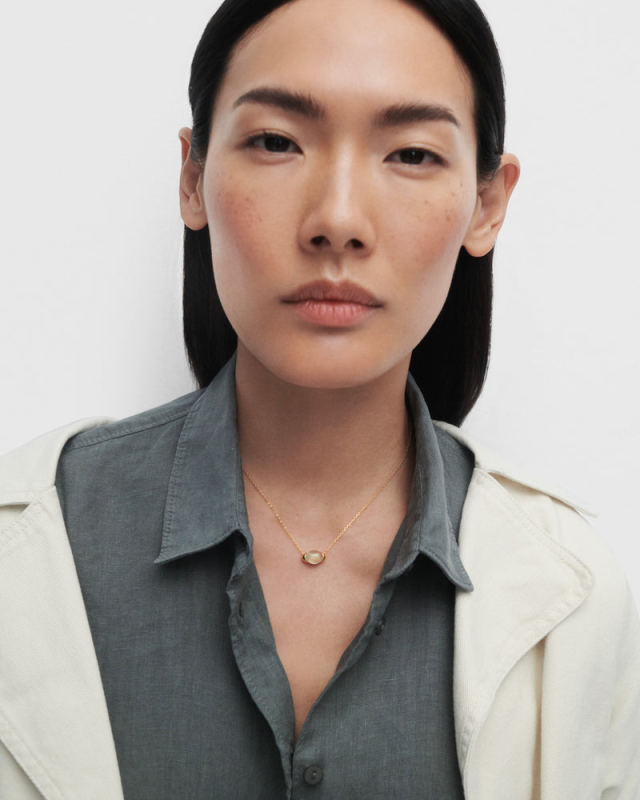 GIOIELLI ESSENZIALI REINVENTATI I gioielli essenziali incarnano la versatilità quotidiana. Gioielli atemporali che vanno oltre semplici monili: orecchini, anelli, collane e bracciali perfetti per tutti i giorni ma che possono anche essere indossati per occasioni speciali. Realizzati in argento placcato oro 18K o ottone e decorati con scintillanti zirconi cubici per adattarsi a qualsiasi stile. Gioielli per tutti i giorni che esalteranno qualsiasi stile o look e perfetti da regalare. ARGENTO RICICLATO Come parte del nostro impegno ad utilizzare materiali più responsabili, abbiamo deciso di introdurre l'argento riciclato nella produzione di molti dei nostri gioielli. L'argento riciclato che utilizziamo proviene da fonti verificate da organismi riconosciuti. Per maggiori informazioni, visita la nostra pagina Sostenibilità. Materiale: Argento sterling (100% argento riciclato) Finitura: Placcatura in Oro 18K Pietre: Prehnite Altezza delle motivo: 7 mm Larghezza delle motivo: 13,5 mm Lunghezza della catena: Chiusura regolabile da 40 cm a 50 cm Peso: 3,16 g Il gioiello verrà spedito con scatola e Garanzia originaleImmagini