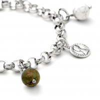 Charm in argento 925 * , Diaspro di Raspini. Il charm è realizzato artigianalmente a mano in Italia con diaspro, pietra che dona coraggio e saggezza. E' munito di maglina con logo Raspini e può essere facilmente inserito su collane, bracciali, portachiavi e orecchini per rendere ogni gioiello unico e personale.Immagini