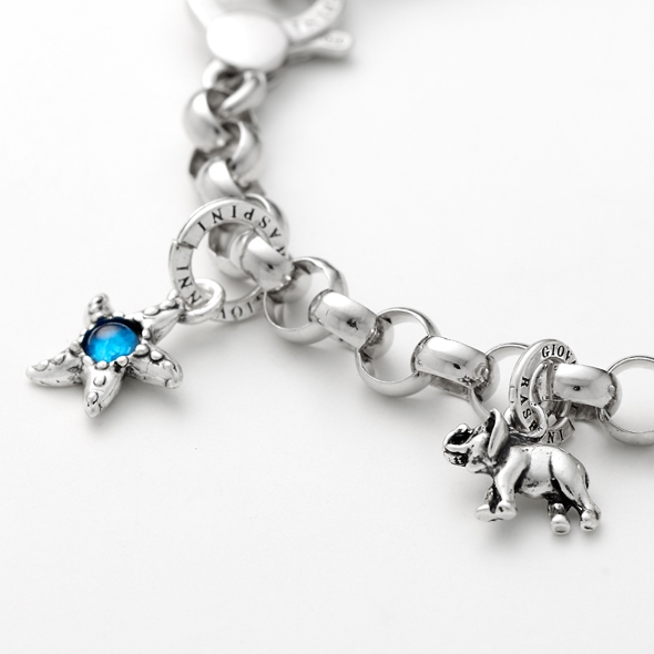 Charm in argento 925 * , con Mini Elefante di Giovanni Raspini. Il charm è realizzato artigianalmente a mano in Italia, è munito di maglina con logo Raspini e può essere inserito facilmente su collane, bracciali, portachiavi e orecchini, per rendere ogni gioiello unico e personale.Immagini
