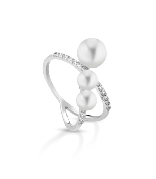 ANELLO IN ORO BIANCO18 KT CON PERLE EDISON E DIAMANTI DI COSCIA