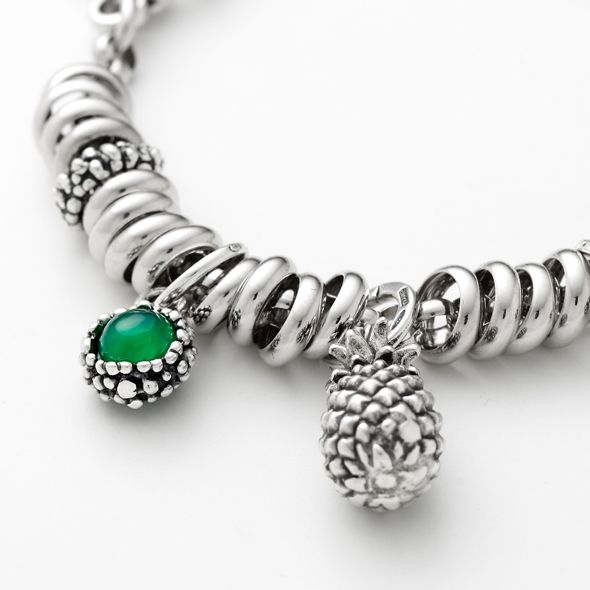 Charm in argento 925 della collezione Perlage di Giovanni Raspini. Con pietra naturale Onice verde, munito di maglina con logo e un peso di 2,5 grammi. La lunghezza totale è di 1,3 cm interamente realizzato a mano in Italia. Viene spedito con scatola e garanzia originali Giovanni RaspiniImmagini