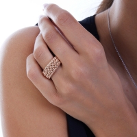 Anello da donna in argento 925 della collezione Chicco di Unoaerre. L'anello è composto da 5 fili in argento 925 morbido con placcatura in Oro rosa 24 kt, l'altezza della fascia è di 1 cm. Super luminoso, raffinato ed incredibilmente elegante, questo anello è disponibile in varie misure. Interamente realizzato a mano in Italia da artigiani, e verrà spedito con scatola e garanzia originaliImmagini