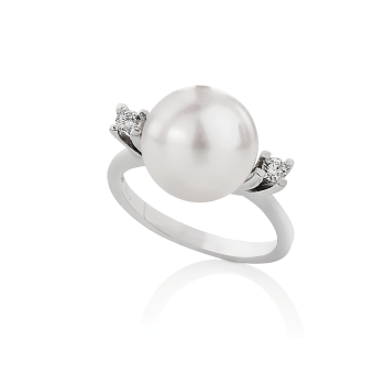 COLLANA IN ORO 18KT BIANCO CON PERLA GIAPPONESE E DIAMANTI DI COSCIA