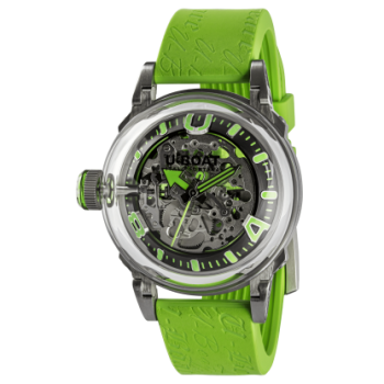 Un nuovo modo di guardare il tempo: più rotondo, più fluido, più “iper-rotondo”. U-65 non si limita a segnare il tempo, ma lo reinventa, spingendo la mente di chi lo indossa “fuori dagli schemi”. Ora reinterpretato in una nuova edizione audace: U-65 PVD. L’iconico design Hypercurve rompe ancora una volta gli schemi, questa volta con una finitura nera della cassa. MOVIMENTO la precisione Svizzera del movimento al quarzo Ronda 756 lubrificato in bagno d'olio. FUNZIONI ore, minuti, pulsante rimessa dell'ora posto sul fondello. CASSA in acciaio AISI 316L. con trattamento PVD nero, completamente riempita di uno speciale olio che mette in risalto il quadrante, creando l’illusione dell’assenza del vetro, con un effetto di colore più intenso e di una maggiore leggibilità. Bolla d'aria a vista sul quadrante per compensare le variazioni di temperatura. Anse mobili. Diametro 44 mm. FONDO innovativo sistema di chiusura (Locking Ring System) con sostituzione rapida della batteria. Incisi a laser un numero seriale e un QR code. La scansione del QR code da accesso a una esperienza digitale esclusiva. Pulsante di rimessa dell'ora. QUADRANTE in metallo scheletrato a tre livelli sovrapposti grigio. Indici e numeri trattati con superluminova di colore verde. Sfere "arrrow" in metallo verniciato con superluminova di colore verde. VETRO zaffiro di altissima qualità, iper-bombato alto 13,20mm con 3mm di spessore. IMPERMEABILITÀ 50 mt, 5 ATM. CINTURINO in silicone. Le anse che collegano il cinturino sono dotate di un sistema mobile speciale, studiato per adattarsi al polso e garantire una vestibilità impeccabile. Larghezza: 22/20 mm. Cinturino in silicone: ref. 3999/Z. Fibbia in acciaio AISI 316L con trattamento PVD nero. Fibbia: ref. 5467/Matt/Screw.