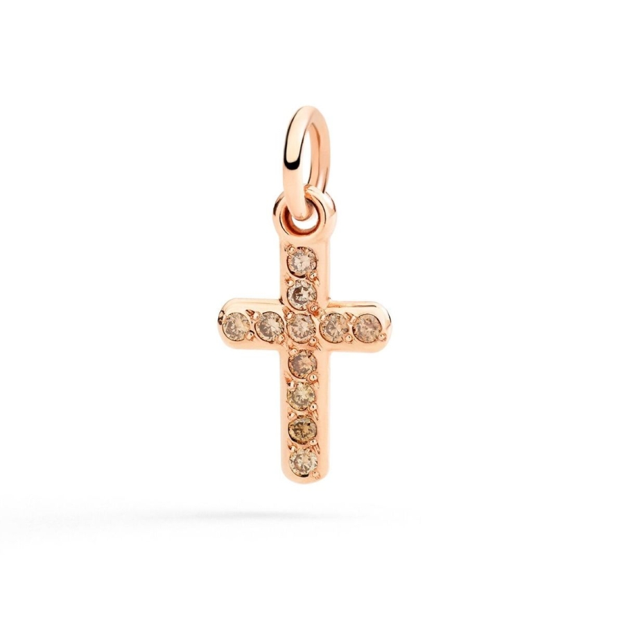 “La Croce, proposta in oro rosa con diamanti brown, invita a riportare lo sguardo e lo spirito al centro: è il simbolo in cui equilibrio e verità personale si incontrano. Indossarla significa affidarsi a un orientamento interiore, scegliere un desiderio, una visione — e trasformare ogni gesto in una dichiarazione di significato Ciondolo croce in oro rosa 9K con 11 diamanti brown (ct 0,13). Il gioiello verrà  spedito con scatola e garanzia originale DoDo.