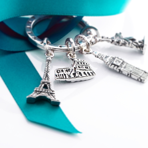 Charm in argento 925 * , Big ben di Raspini, realizzato artigianalmente a mano in Italia. Il charm è munito di maglina con logo Raspini e può essere inserito facilmente su collane, bracciali, portachiavi e orecchini per rendere unico e originale ogni gioiello.Immagini