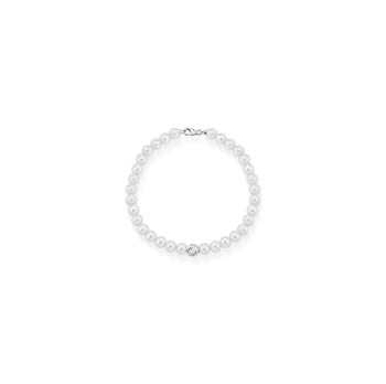 Bracciale di perla coltivata d'acqua dolce di alta qualità e chiusura in oro bianco. Semplicità ed eleganza si uniscono in questi bracciali di perle, impreziositi dall’oro bianco. Pratici da indossare e facili da abbinare, donano un tocco di luminosità. La perla misura 5.5/6mm Il bracciale ha una lunghezza di 20cm. Comoda chiusura a moschettone. Il gioiello è interamente realizzato in Italia da maestri orafi e verrà spedito con scatola e garanzia originali.Ti potrebbe interessare anche